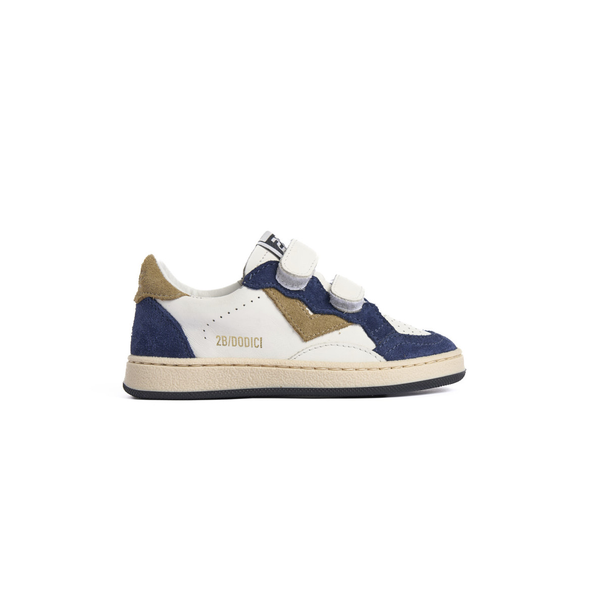 Sneakers 2B12 In Pelle Bianca, Inserti Navy