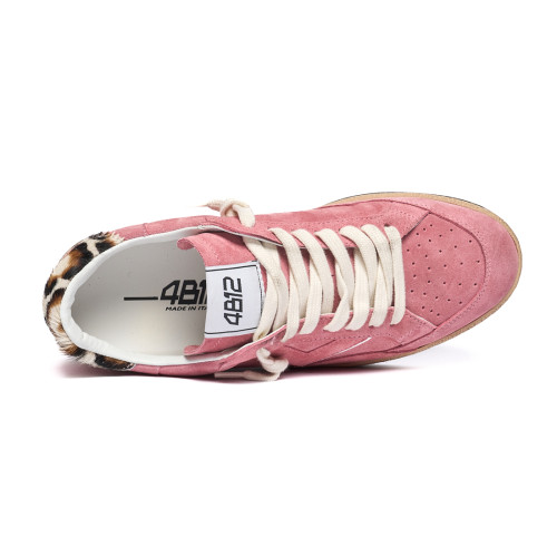 Sneakers 4b12 Donna In Camoscio Rosa E Dettaglio Leopardato