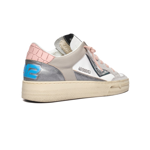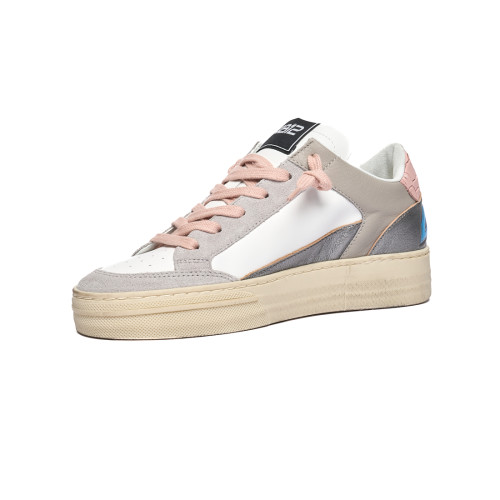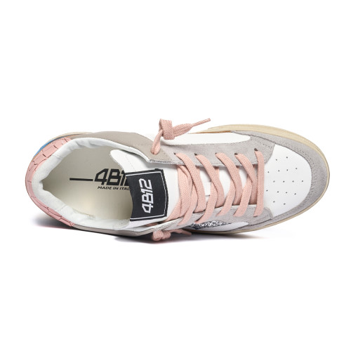 Sneakers 4B12 In Pelle Bianca E Dettagli Tortora Con Laccio Rosa