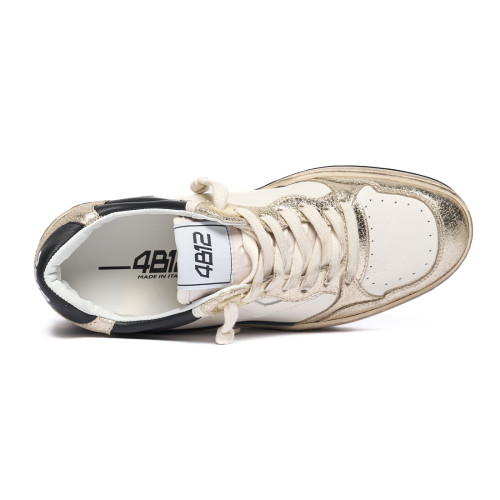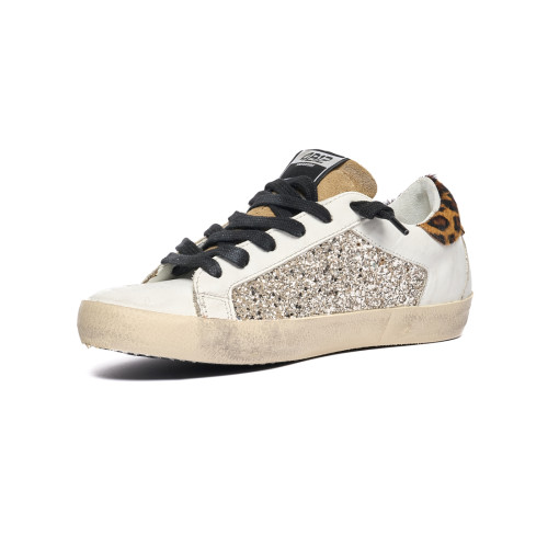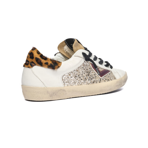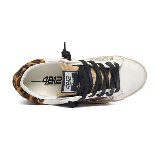 Sneakers 4b12 Donna In Pelle Bianca E Dettaglio Leopardato