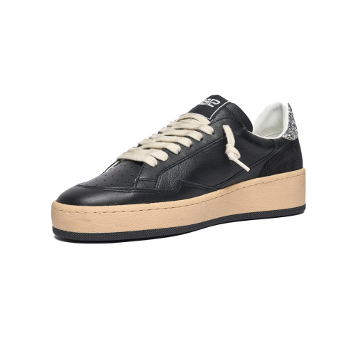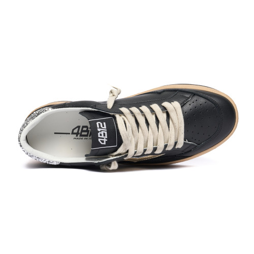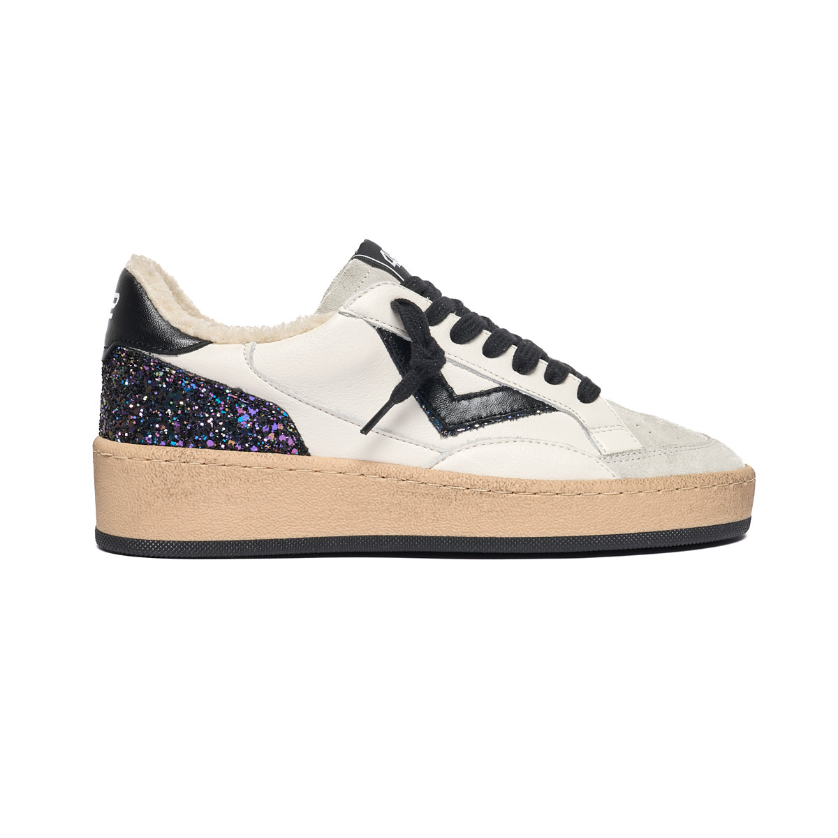 Sneakers 4B12 Donna In Pelle Bianca E Dettagli Glitter