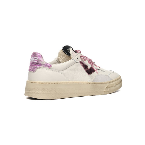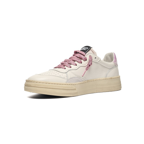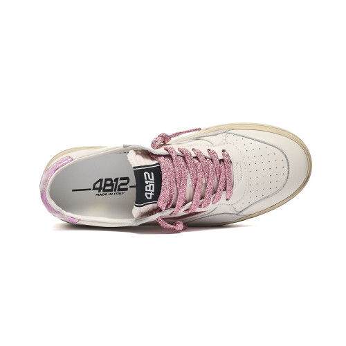 Sneakers 4B12 Donna In Pelle Bianca E Dettagli Rosa
