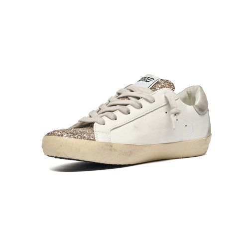 Sneakers 4b12 Donna In Pelle Bianca Con Particolare Leopardato
