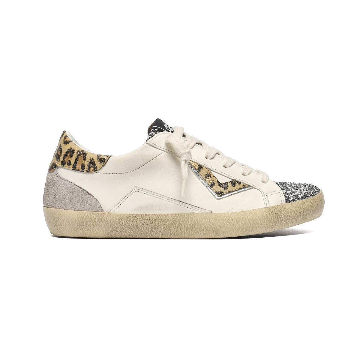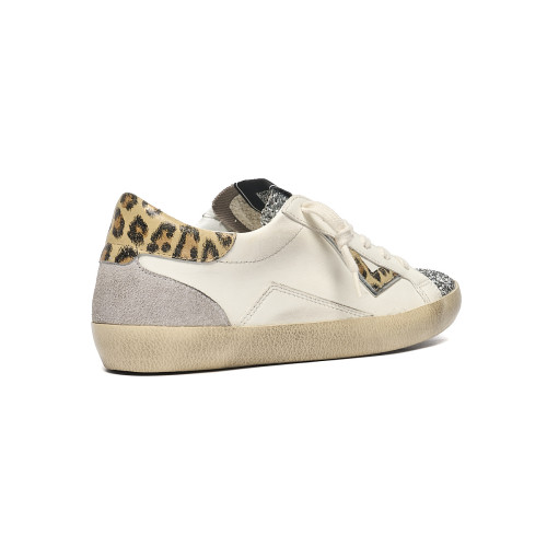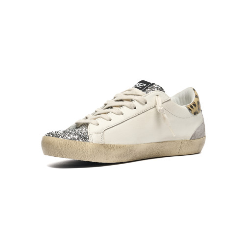 Sneakers 4b12 Donna In Pelle Bianca E Dettagli Leo E Glitter Argento