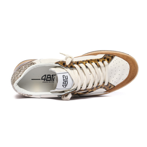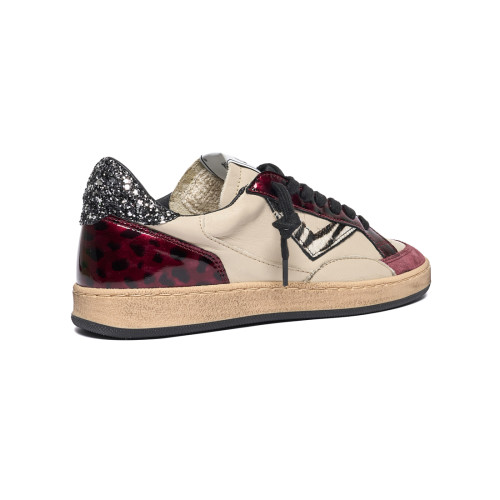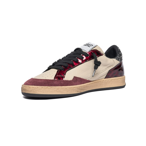 Sneakers 4B12 Donna In Pelle Burro Con Dettagli Bordeaux E Glitter Nero