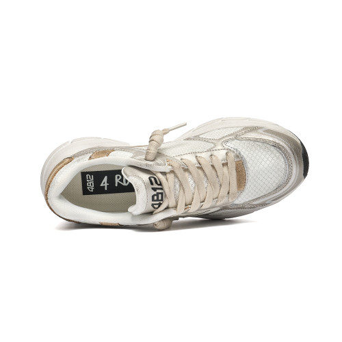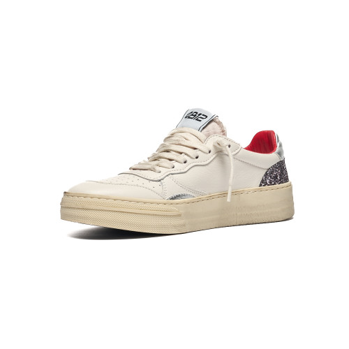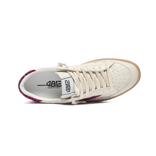 Sneakers 4b12 Donna In Pelle Bianca Laminato Lilla