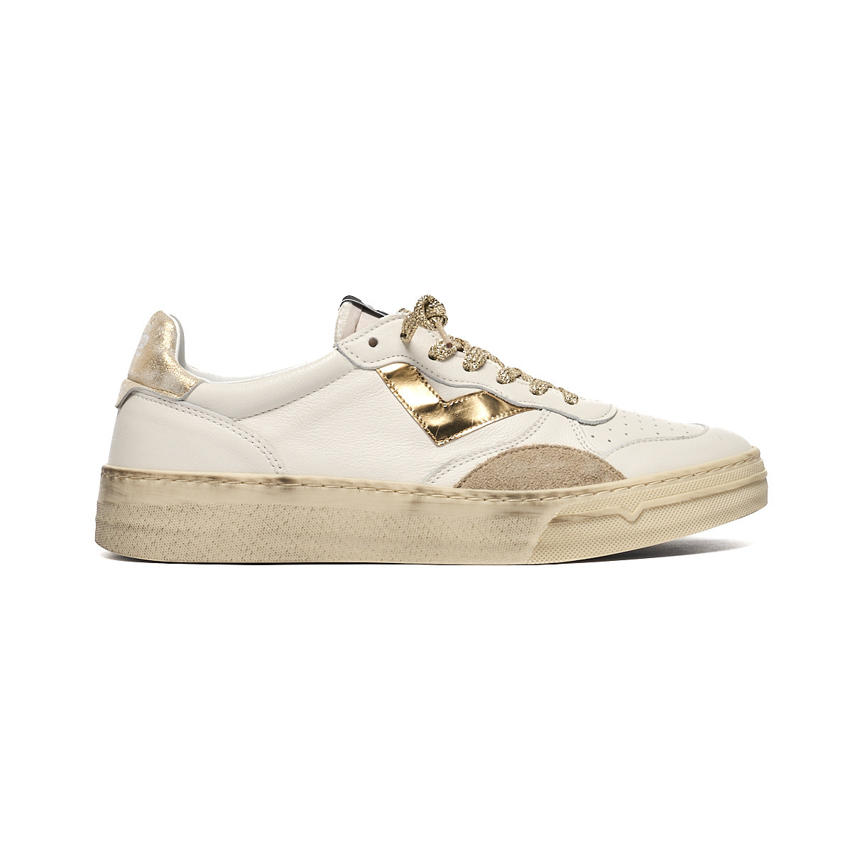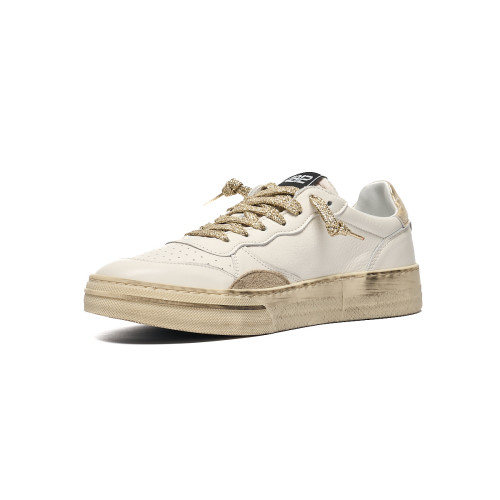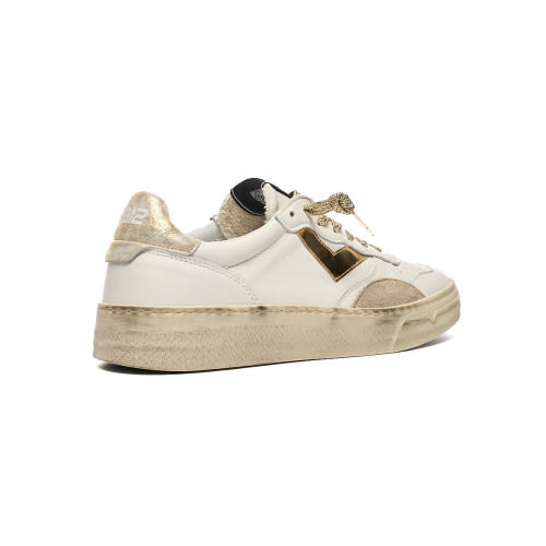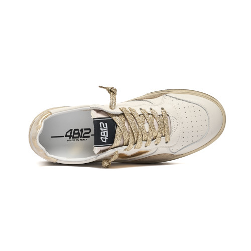 Sneakers 4B12 Donna In Pelle Bianca E Dettagli Oro