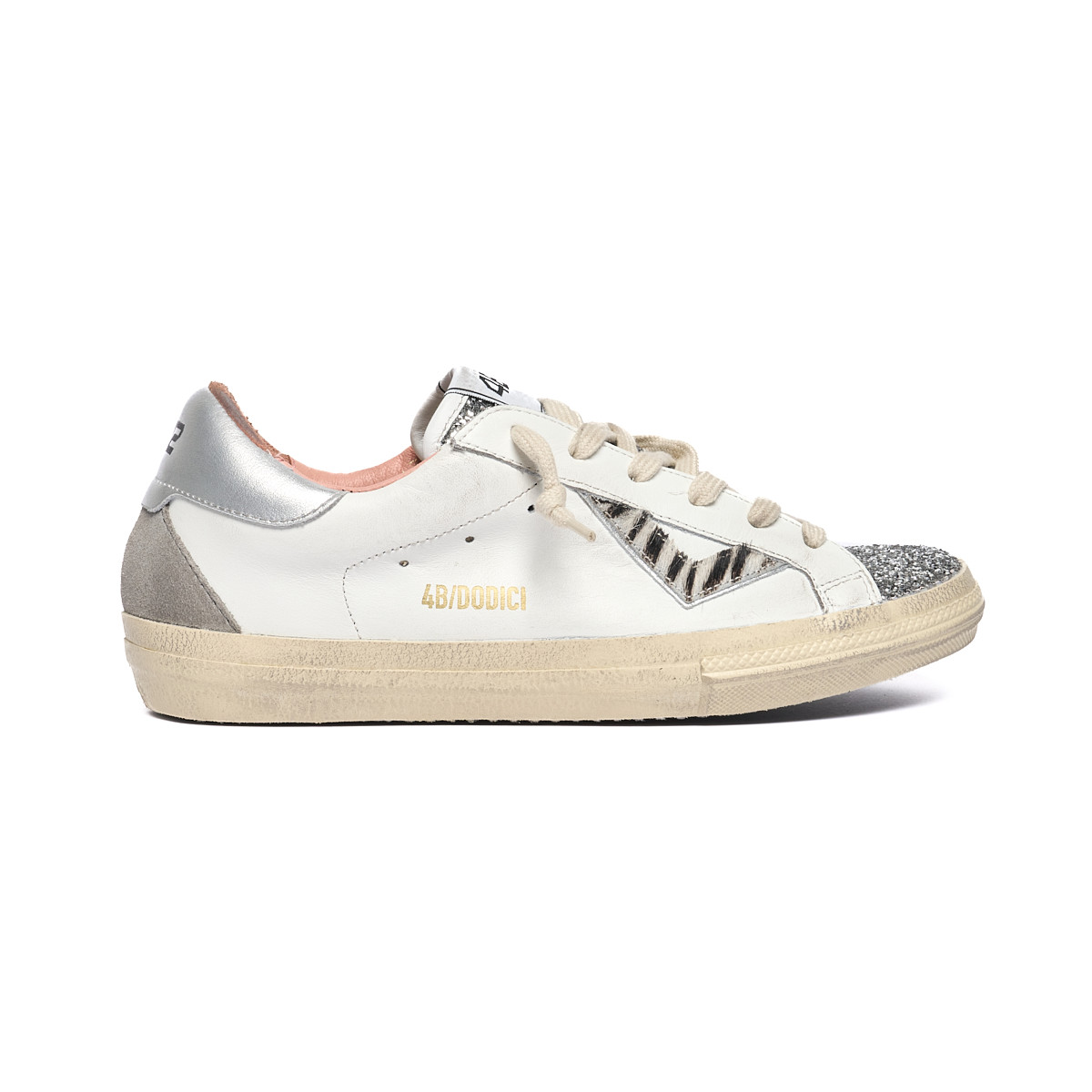 Sneakers 4B12 Donna In Pelle Bianca E Dettaglio Zebrato