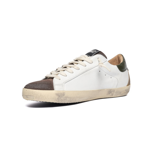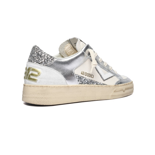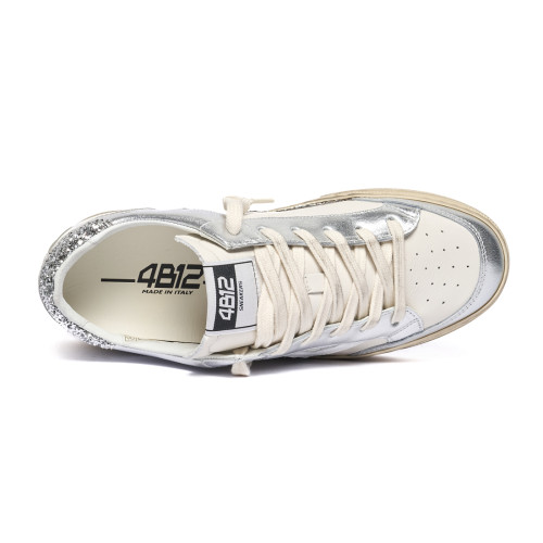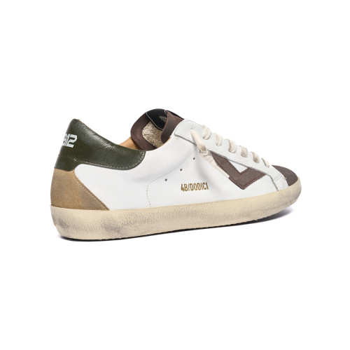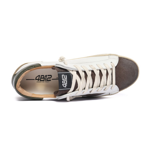 Sneakers 4B12 Uomo In Pelle Bianca E Cognac