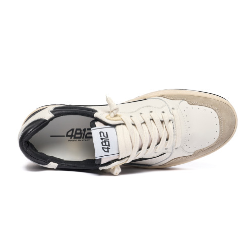 Sneakers 4b12 Uomo In Pelle Bianca E Nera.