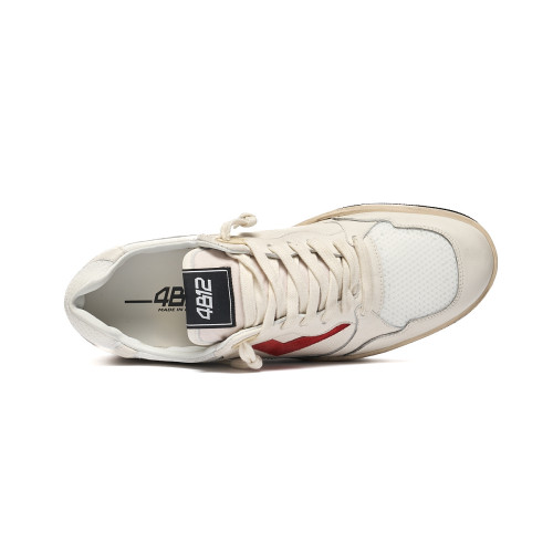 Sneakers 4b12 Uomo In Pelle Bianca Con Logo Rosso